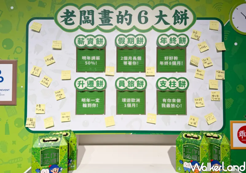 以「工作必順」為主題的創新活動吸引大量上班族與親子家庭參與,結合現代職場文化、傳統信仰與趣味互動,打造讓人耳目一新的體驗。活動設有三大亮點區域,其中最受歡迎的「工作必順投擲區」,結合老闆經典「大餅語錄」設計投擲遊戲,例如「明年調薪50%」、「兩個月長假等著你」等句子,讓民眾在輕鬆一擲中紓解壓力,還能擲出自己的職場好運。