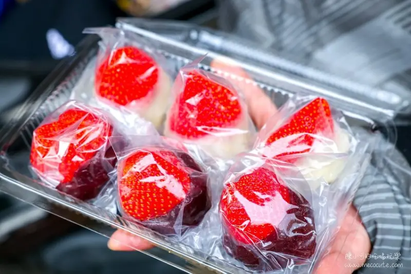 遼寧街夜市人氣草莓麻糬:黑麻糬