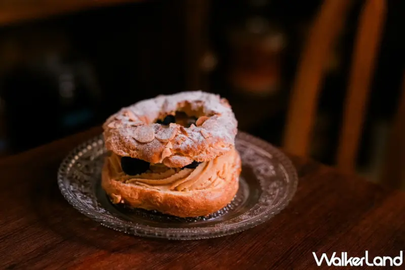 其他菜色如南瓜燉飯、和牛臉頰與市場鮮魚也各具特色。南瓜燉飯選用Acquerello米,搭配濃郁的雞高湯,雖然看似簡單卻充滿深度;和牛臉頰經過慢燉與炭烤,搭配香茅牛醬汁與發酵香菇汁,最後以五年醃梅提味,完美呈現濃郁與清新的平衡;市場鮮魚則依每日漁獲變化,以鹽漬檸檬與焦化奶油呈現自然的鹹香與酸甜。「于室」的甜點同樣出彩,一份巴黎布列斯特為饕客的味蕾劃上甜美句點。泡芙內夾著杏仁堅果醬與慕斯林奶油,並點綴以Disaronno酒香與新鮮莓果,濃郁而不膩,餘韻悠長。
