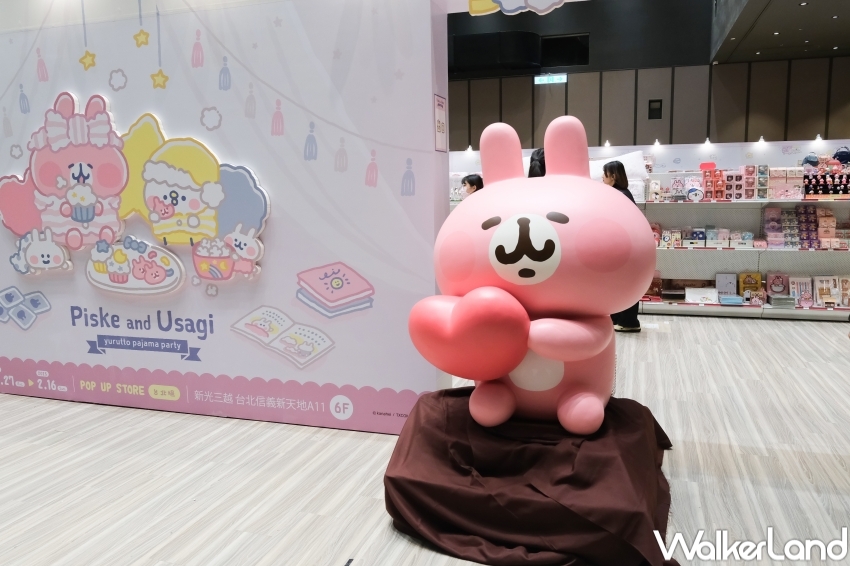 不只吉伊卡哇,卡娜赫拉的小動物也有「睡衣派對」!信義區全新登場的快閃店「卡娜赫拉的小動物-睡衣派對」主打粉嫩色系、療癒配色,P助和粉紅兔兔也換上條紋、蝴蝶結的睡衣造型,陪著粉絲們一起宅在家、可愛入睡。