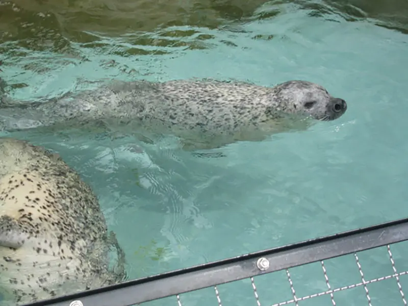 ▲可從水槽各個角度觀看身材渾圓的海豹在水中歡樂玩耍。