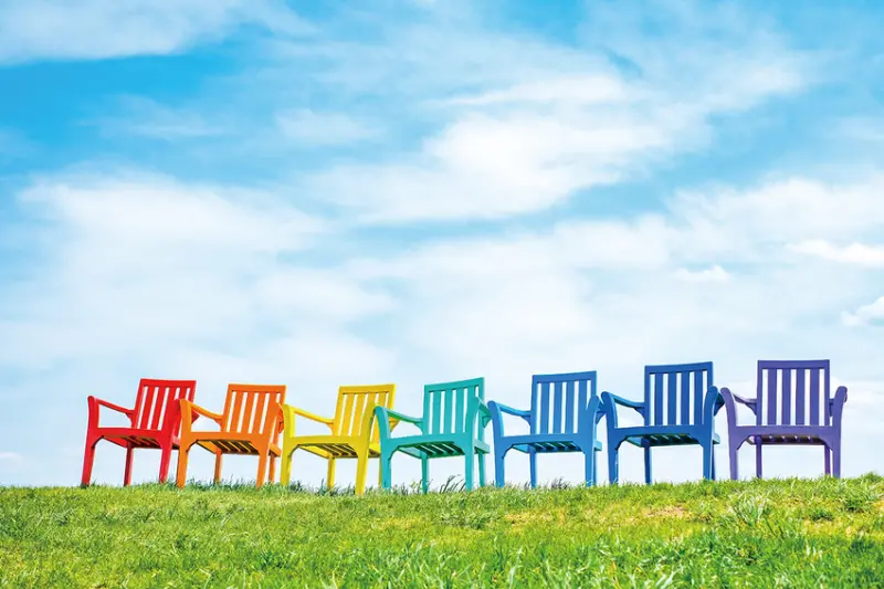▲小山丘上的七彩椅子,搶眼好拍,還可坐在這裡欣賞風景。