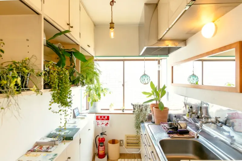 ▲公共盥洗空間擺滿綠色植物,添加舒服的生活氣息。