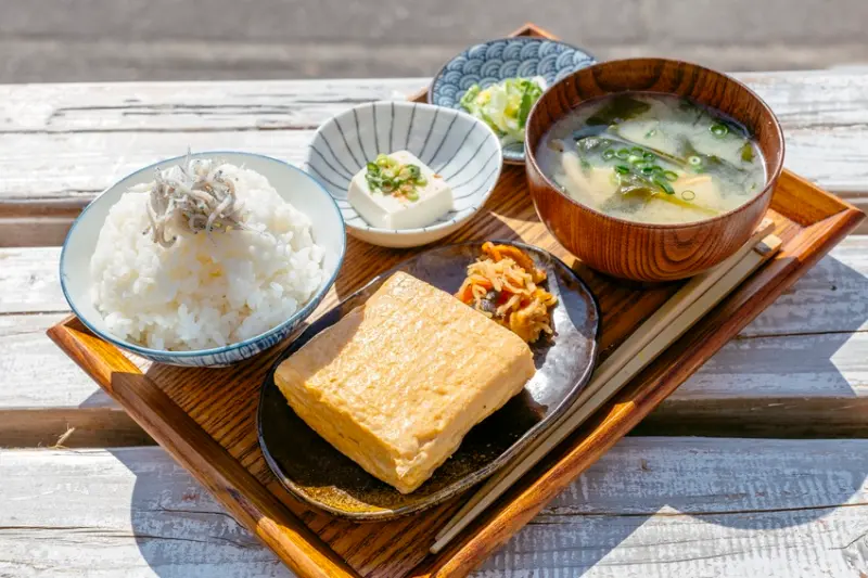 ▲每天早上七點半開始供應的早餐Menu,以山形風味噌湯與白飯、小菜為主,全部都由店家親手製作。