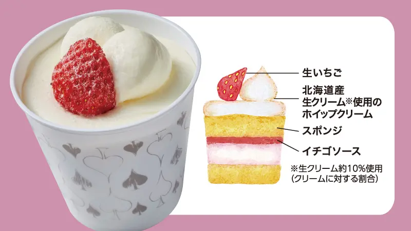 「とろけるクリームの苺ショート(入口即化奶油草莓蛋糕)」(¥315)以柔軟的戚風蛋糕搭配酸甜草莓,以及北海道產生奶油,組合成奢華的口感,用湯匙輕舀就能品嚐,讓人一吃上癮。