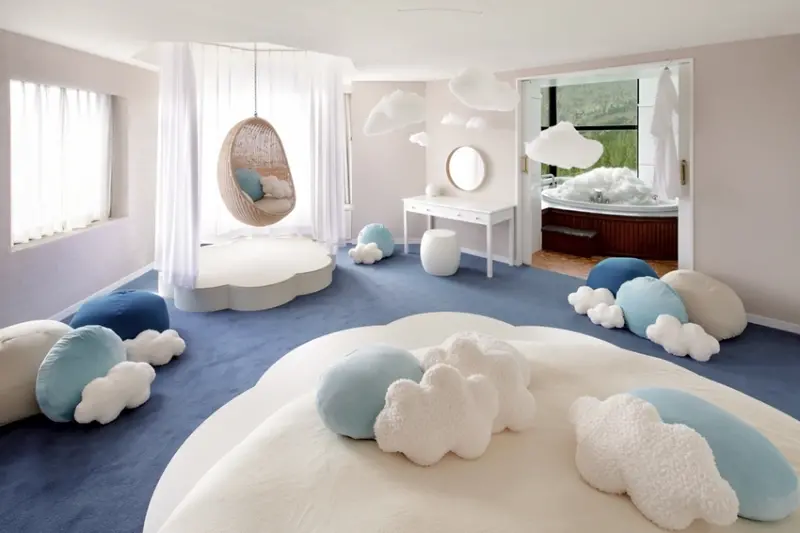 ▲除了農場外,星野TOMAMU度假村也設有賞雲海的平台,因此特意打造了佈滿雲朵的粉嫩房型。