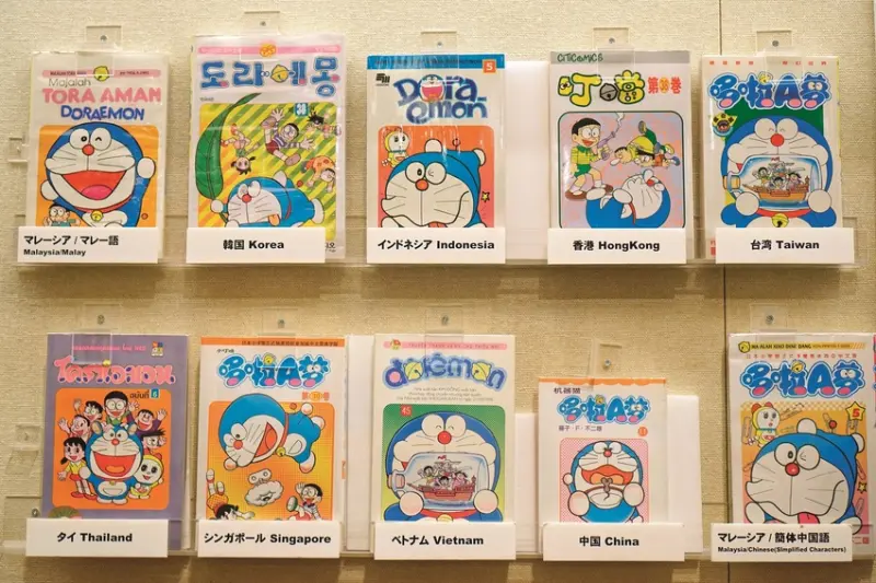 ▲各國發行的《哆啦A夢》齊聚一堂。