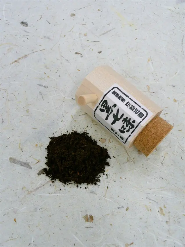 ▲御香煎 四角(御香煎 四角木筒)¥1100/中藥藥材製成的飲品茶粉,是原了郭的原點。