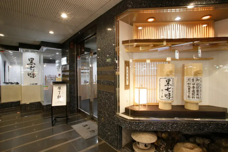1703年,曾協助天皇主治醫生處理中藥處方的原了郭,在八坂神社前創業開店,以中藥藥材為原料製成的飲品茶粉「御香煎」是其招牌。勇於求新求變的老舖在百年前開始挑戰不同領域,利用香煎手法研發出獨特的「黑七味」,富含深度的香味與一般七味粉完全不同,也成為原了郭的明星商品,是京都代表性的調味料。![]()