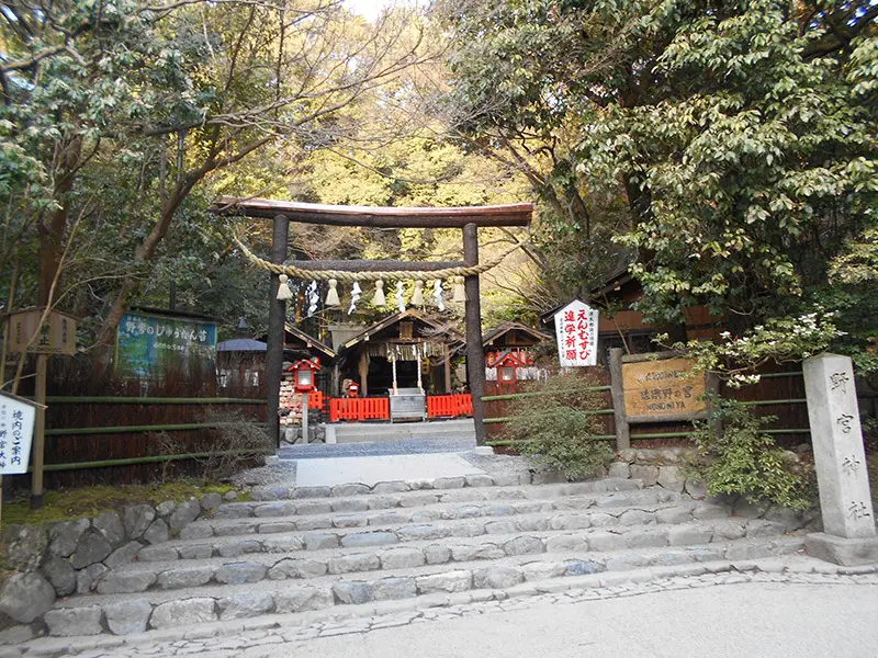坐擁青苔庭園、豐沛竹林的唯美景致,使野宮神社成為日本俳句大師松尾芭蕉的題材,亦在日本文學著作《源氏物語》中詳細描述了猶如鋪上綠色地毯的青苔庭園之美。野宮神社源自「野宮」,意指齋宮(出任伊勢神宮的未婚皇室女性)齋戒沐浴3年的地方,地點多次選在嵯峨野的清幽之處,而齋宮前往野宮的隊伍稱為「齋宮群行」,規模浩大,現今成為野宮神社例行祭典。