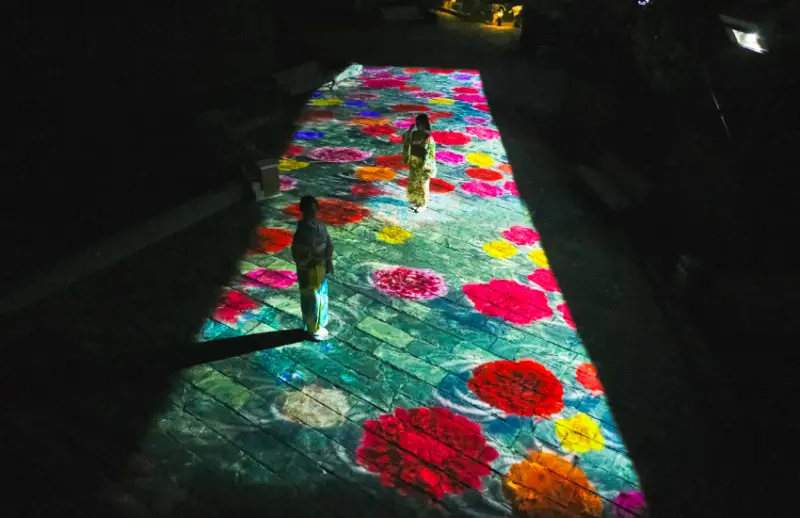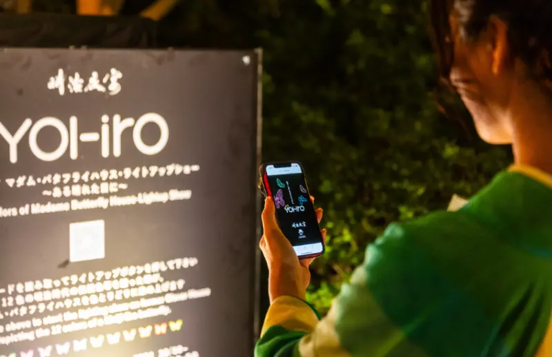 特別打造的觀眾互動型燈光秀!遊客可以使用智慧型手機為「蝴蝶夫人之家」上色,選擇明治時代傳統色彩,當累積足夠的參與者,就會啟動絢麗多彩的光影表演,讓整棟建築瞬間變身魔幻舞台!