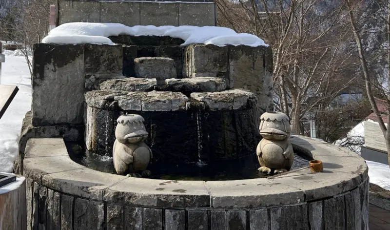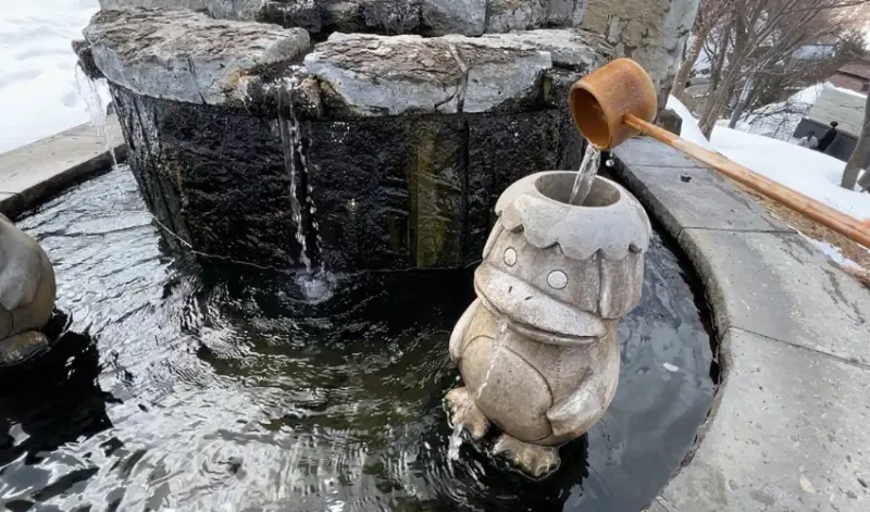 經過定山溪溫泉鄉入口處,很容易發現一雙河童雕像的祈願手湯泉池,體驗手湯的方式很簡單,首先,手持木勺舀起溫泉水,澆上河童頭頂的凹槽處,當溫泉水從河童雕像口中流出後,即可暖手與淨手。與此同時,河童家族的祈願手湯不只療癒你,也會帶給你幸運,據說朝著河童大王方向雙手合十,口中默念祈願詞「On Kappaya Unken Sowaka」三次,便能實現心願喔。![]()