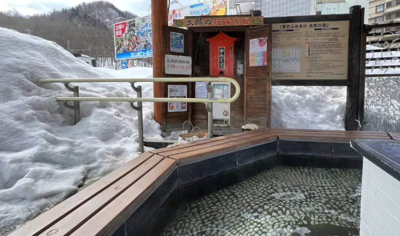足湯太郎之湯位於定山溪溫泉鄉正中央,當地人稱之為「以足會友」的交誼場域,坐在旁邊的一位當地阿姨告訴我:「要是覺得北海道的冬天冷,就來這裡暖暖腳,順便和人聊聊天,心也慢慢就暖了。」