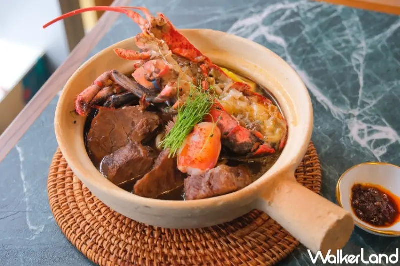 特別的是,在本次套餐中,主廚也將台灣為代表「牛肉麵」作為主角,設計全新「海陸紅湯牛肉麵」,以美國牛小排、牛腱,搭配波士頓龍蝦,打造最豪邁霸氣的海陸龍蝦牛肉麵。套餐還能搭配無酒精香檳,打造最特別台菜吃法。