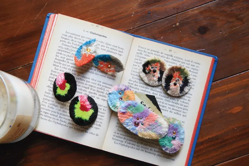 ▲以絨毛毯為主要素質特製的TRIBO系列(耳環¥3780起)相當受歡迎。店舖兼工房的設計可以目睹職人手作的過程。