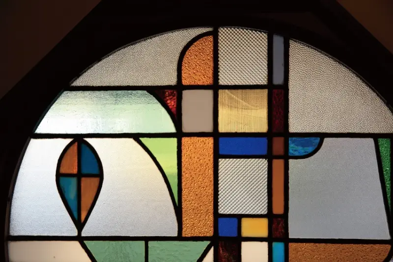 ▲光線透過七彩的圓形彩繪玻璃,形成美妙畫面。
