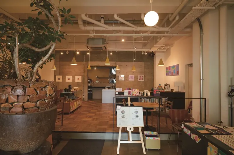 親眼看起五条興起成為熱鬧街區的古老地標大樓「Jimukino-Ueda」,2011年重新翻修改建為風格複合設施。進駐於其中1樓的小小餐館&PAPERS ,立志成為當地的「員工餐廳」,讓人們能夠輕鬆平價地享用美食。店內使用了大樓3樓紙製小物專賣店BOX&NEEDLE的產品作裝飾,打造出舒適時尚的用餐空間。