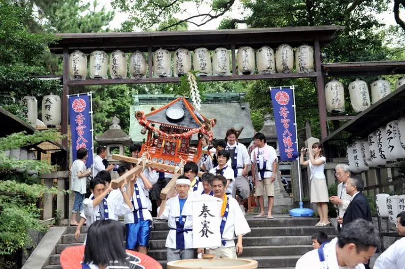 ▲被稱為「陶器神社」的若宮八幡宮的祭典也與市集同一時期展開,裝飾著陶瓷器皿的神轎獨具特色。