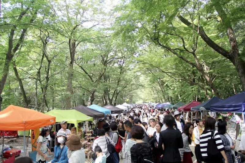 被列為世界遺產的下鴨神社,境內擁有寬廣的森林。寧靜自然包圍下的舒適氣氛,一直都是受到京都在地人與觀光客喜愛。每季一次舉行的森林手作市集,雲集來自日本各地的手作攤位,由於活動前後2天的攤位有所不同,連續2天造訪也能發現不同驚喜。此外會場更同時展開森林音樂會,在悠揚樂聲中悠閒漫步,細細感受糺之森四季不同的美景。