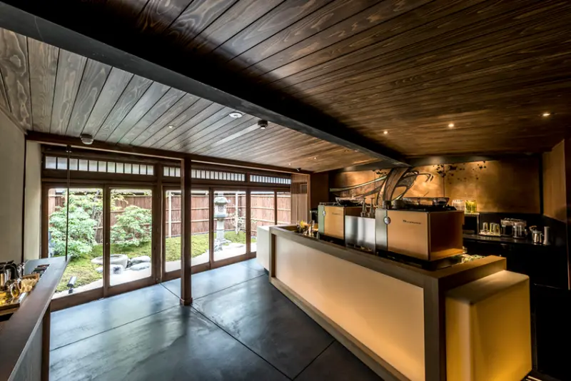 ▲時尚的吧檯巧妙融合在古老的木造町家中。