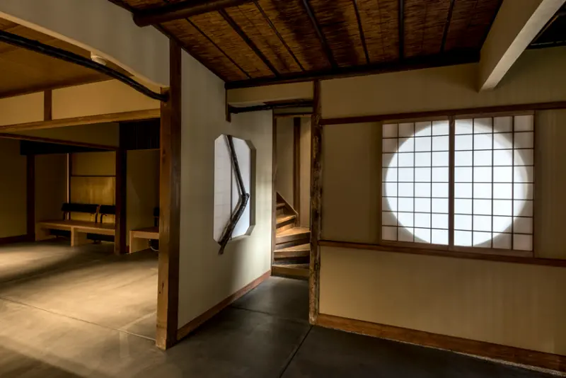 ▲京都町家獨特的「通庭」,連接出口與內側,並以春季著名的「京都.東山花燈路」活動為概念設計。