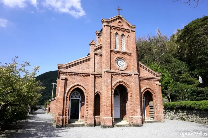 1873年禁教令解除後,由最早來到五島地區的法國神父在1879年建立了「堂崎小聖堂」,現在紅磚瓦製的哥德建築形式則是1908年第二代神父為紀念日本最初殉教二十六聖人中的約翰五島擴修而成,外牆是紅磚瓦、室內則是木造肋狀拱頂天井,還有著花窗玻璃,建築風格唯美。