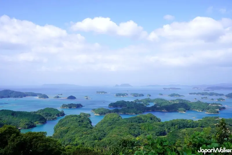綿延在佐世保港往北至平戶瀨戶約25公里海面上的208個島嶼,因島嶼數眾多,被稱為「九十九島」,其中最美的島嶼景色都集中在佐世保近海,展海峰位於俵浦半島中央的高台,正好居高臨下可180度俯瞰整個南九十九島,景色之美無法言喻。展望台下有個號稱植有15萬株花卉的花田,春有油菜花、秋有大波斯菊,一次將島嶼、花海美景盡收眼底。