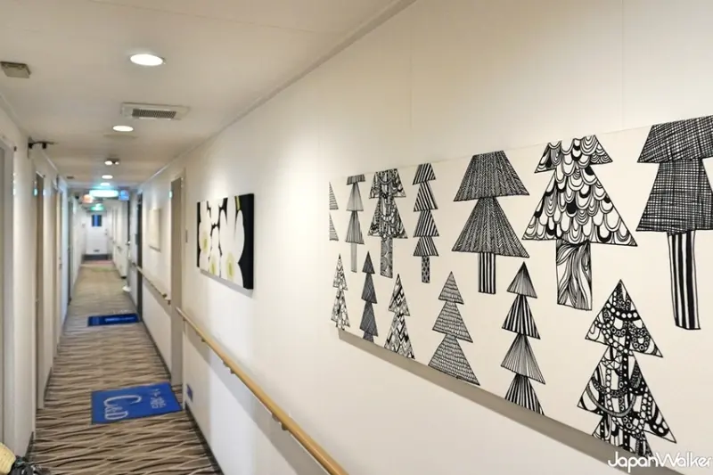 ▲船艙指定席的走廊掛有時尚文青最愛的芬蘭品牌Marimekko風格掛飾。