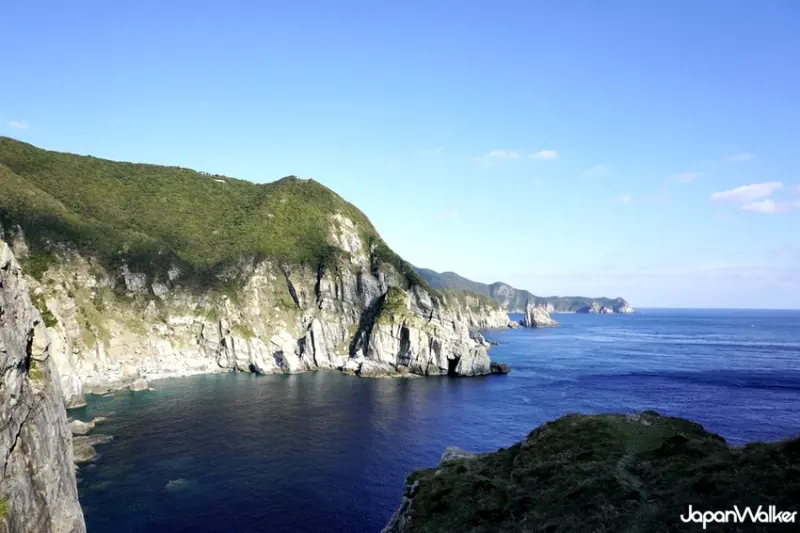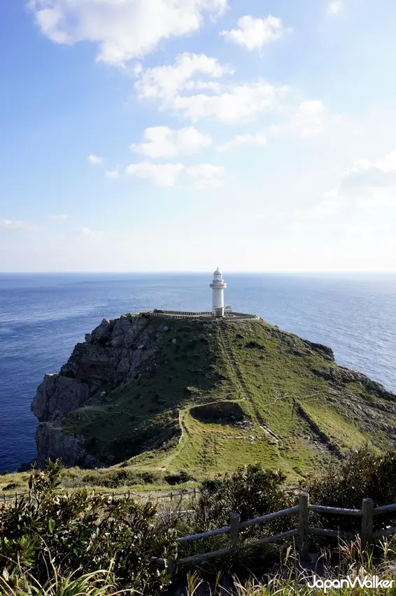 燈塔所在的大瀨崎斷崖,現被指定為西海國立公園的特別區,想更接近燈塔欣賞斷崖美景,得從最頂的登山口走「大瀬崎椿ロード(大瀬崎椿林步道)」前往,穿越過林蔭扶疏的椿樹林,再步下斷崖即可到達,經整修過的步道前半部尚平坦好走,後半部略為陡峭,須小心注意步伐,步道往返燈塔約1個多小時,回程一路上坡較為辛苦,然而為了燈塔斷崖絕景絕對值得!