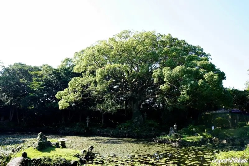 ▲樹齡840年的大楠木現在仍然枝葉茂盛,自福江城建城以來,一直是守護藩主五島家族的聖樹。