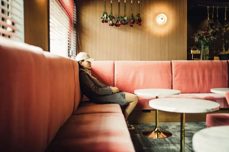 ▲大廳設有慵懶的沙發,時尚設計中又帶有些許的懷舊風情,是HOTEL SHE的特有個性。