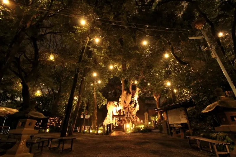 ▲為了翻轉「夜間的神社陰森可怕」的刻板印象,來宮神社以柔和的燈光點綴夜晚的大楠周邊,吸引大批旅客在夜間前往造訪。