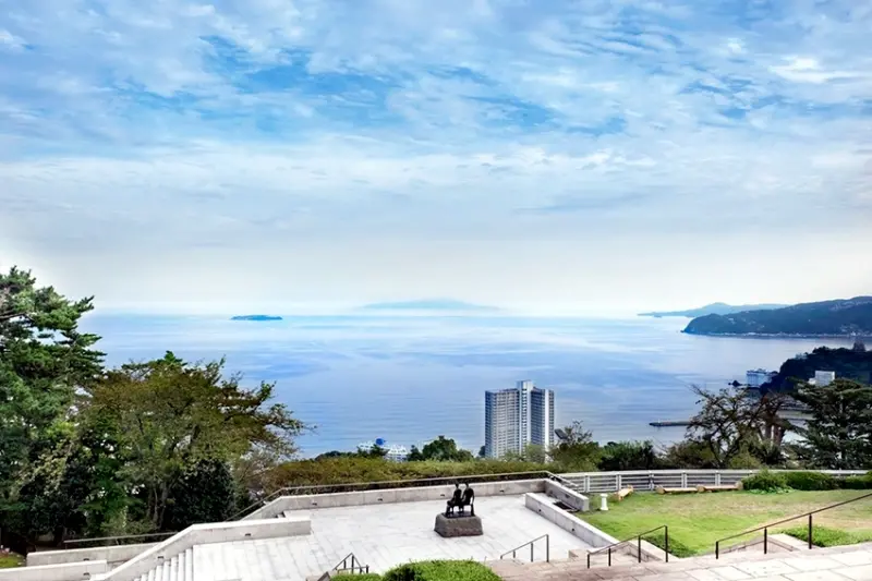 ▲入口處前方的寬闊廣場,可遠眺相模灣,享受自然美景。
