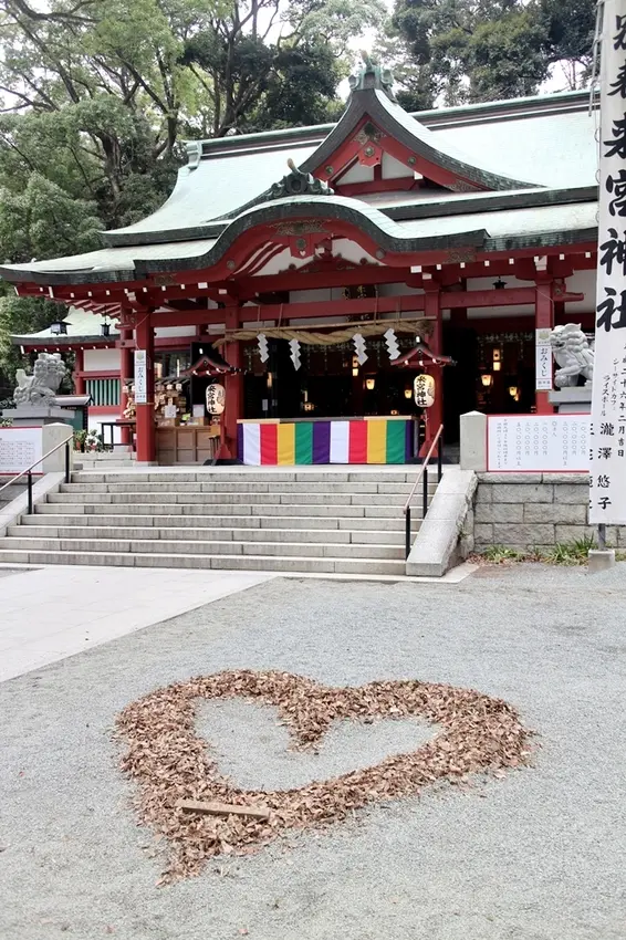 ▲位在來宮神社本殿旁的心型,以落葉堆疊而成,相當吸睛!