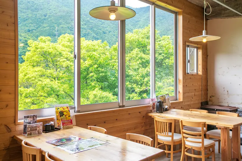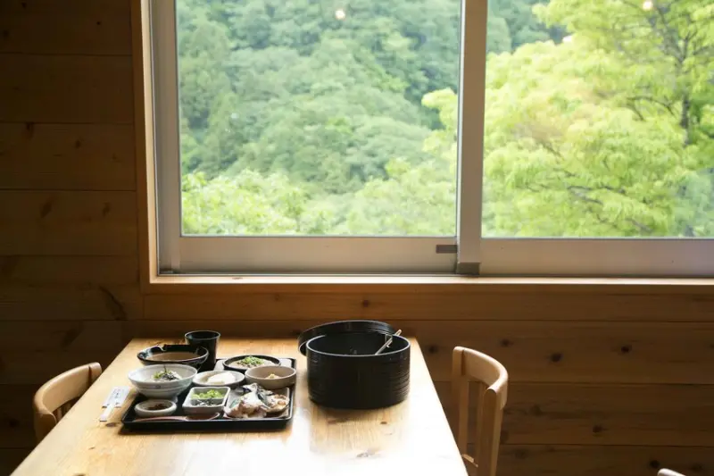位於山路旁的小小店舖,沒想到走進後別有洞天,沿著山壁向下而建的獨特建築,居高臨下,讓「山藥」坐擁絕景景觀,坐在窗邊就能享有斷崖絕壁的獨特景致。以山藥的一種「日本自然薯」為料理的主角,利用其黏度高、風味佳、還能整腸的特性提供健康定食,搭配自家製的味噌,深受女性歡迎。