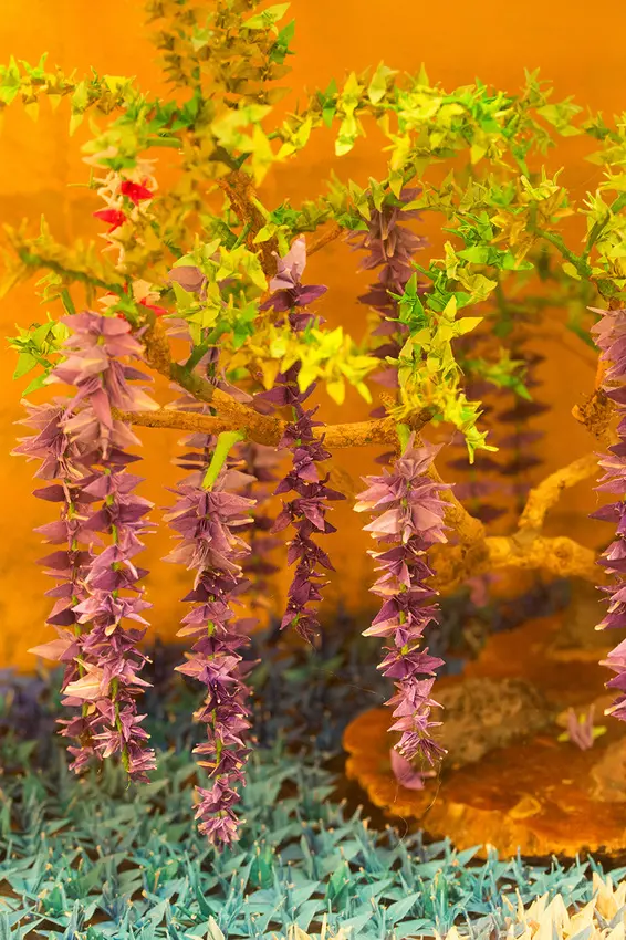 ▲由極小的千羽鶴折紙製成的手工藝作品,都是出手老闆的巧手。