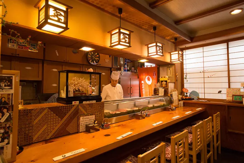 箱根的人氣壽司店,由入行近60年壽司職人老闆打造的獨家鰺魚丼讓店內總坐滿了慕名而來的饕客。因相模灣近海深度夠,能捕撈到肥美的鰺魚,加上特製的調味,讓鰺魚丼成為招牌名物,加上展現職人功力獨門壽司,是來到箱根必嚐的好味道。店內還能看到老闆自製的迷你千羽鶴折紙,巧手可見一斑。