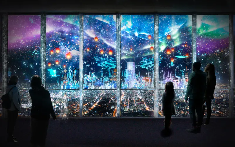 融合夜景的光雕投影「CITY LIGHT FANTASIA by NAKED」再度於大阪第一高樓HARUKAS 300展望台舉行。今年以「Crystal World」為主題,將從天而降的雪花﹑水晶與夜空及街道連結,讓看不見極光、閃耀星空的大阪也能欣賞奇蹟般的夢幻世界。除了現有的60樓迴廊窗戶光雕投影外,在58樓的天空庭園打造從雙塔傾瀉⽽下的瀑布與地⾯上的湖泊影像相互輝映,遊客可觸摸螢幕或在地板上⾏⾛,與投影互動,享受高科技的奇幻世界;亦有不同的炫目體驗活動,期待與來客共度繽紛夜晚。