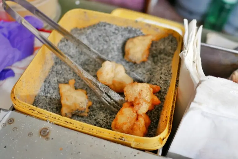 這家是在地人的下午茶小點心,口感有點像白糖粿,但又比白糖粿更實心軟Q一點,採用糯米糰也就是麻糬下鍋油炸,就是療癒的台味小點心,尤其是炸過後那外酥內軟Q的口感超愛,裹上花生或芝麻香氣更香甜。