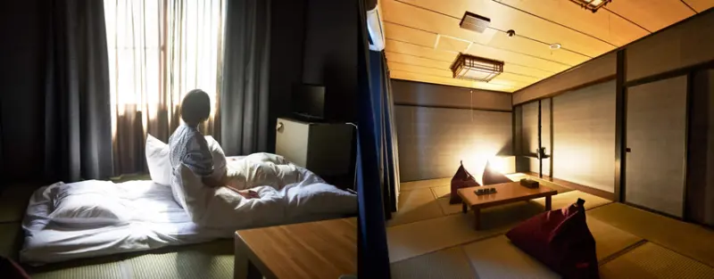 ▲飯店的房間皆為和室房,分為4種房型,單人房、雙人房、附設淋浴間的雙人房及可入住6人的大通鋪,部分房間需公用衛浴設備。