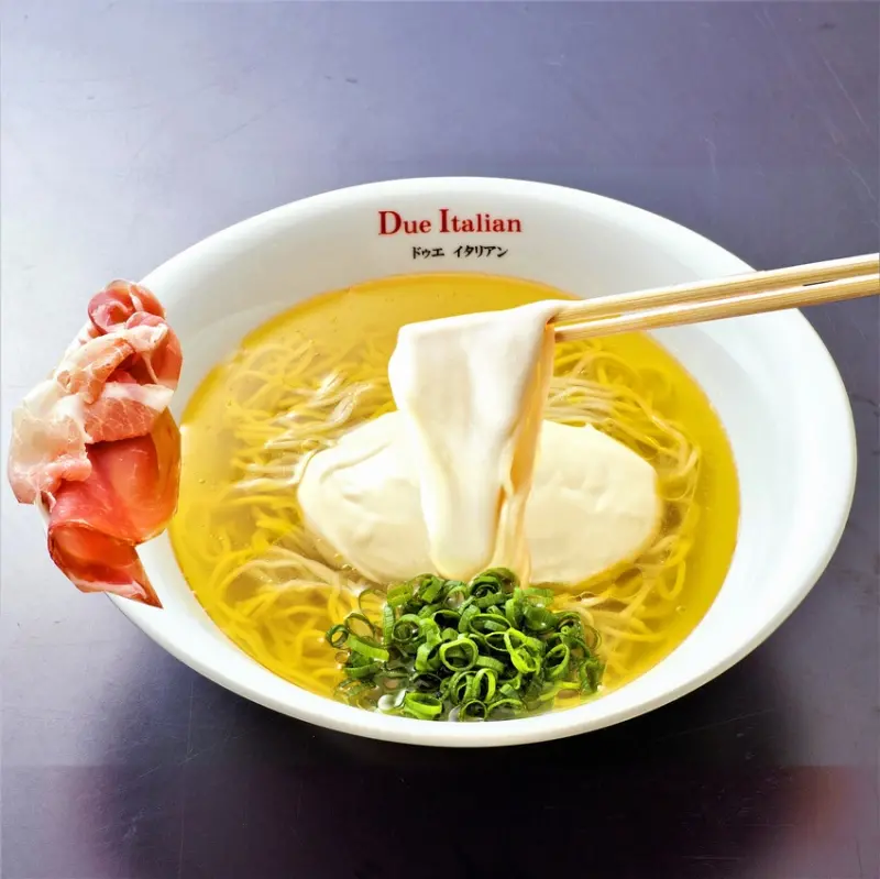 在台北新光三越信義新天地A4也有展店的獨特拉麵店「Due Italian」,結合義式料理與拉麵的起司拉麵深受女性歡迎。