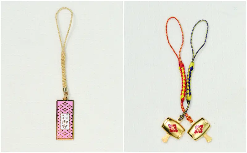 ▲左·恋愛成就守り、右·縁結び幸せ小槌/加持過的御守,小巧又方便攜帶,可以掛在手機或錢包上,守護大家的戀情。