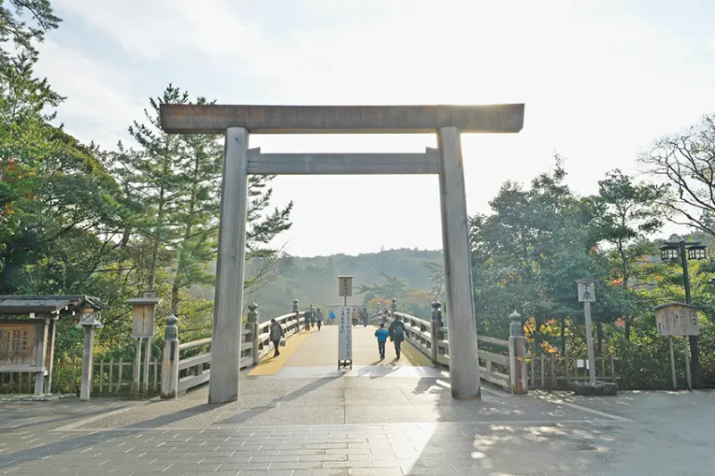 ▲內宮的入口為巨大鳥居與宇治橋,走過宇治橋橫越五十鈴川,就象徵抵達神靈所在的神聖場域。