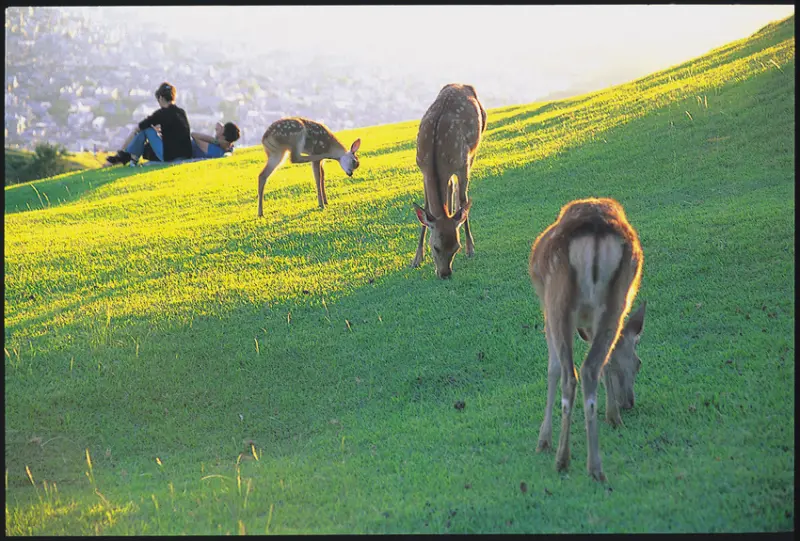 ▲若草山又名三笠山,高342公尺,在山上隨意走動的鹿,也充滿濃濃的奈良風情。(圖片提供:奈良觀光協會)