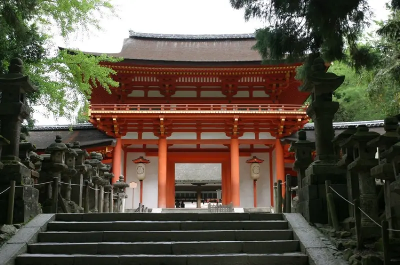 位於奈良公園境內,背對春日山原始林,被自然綠意環繞的神社是奈良時代平城京都城的守護神社,建於西元768年,相傳曾有神明騎著白鹿來到奈良,因此在這裡,鹿被視為神的使者,御神籤也是鹿的造型。在奈良公園到處都可以看到自在走動的鹿,成為奈良的一大特點!