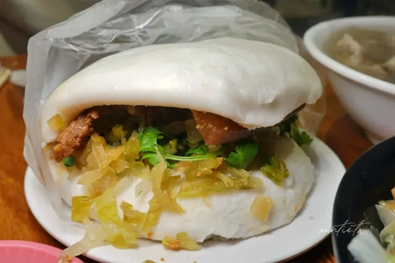 料多到快炸開的傳統刈包,中間夾入香噴噴的半肥半瘦控肉,還有福源花生粉、酸菜及香菜等佐料,香軟帶點Q度的刈包包子,不會太硬或濕濕軟軟,濃郁肉香與花生粉香氣融合恰好,入口即化的滋味讓人意猶未盡!