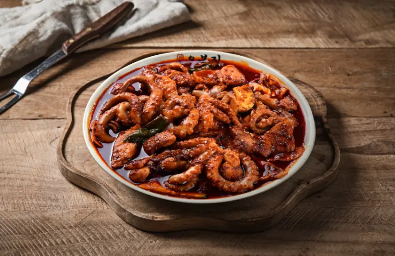 特別值得一提的是「直火炒章魚」這道凝聚38年廚藝精華的料理,店家以特製醬料突顯長臂章魚的鮮美,完美詮釋了韓式家常菜的精髓。2人份,3,200日圓。![]()