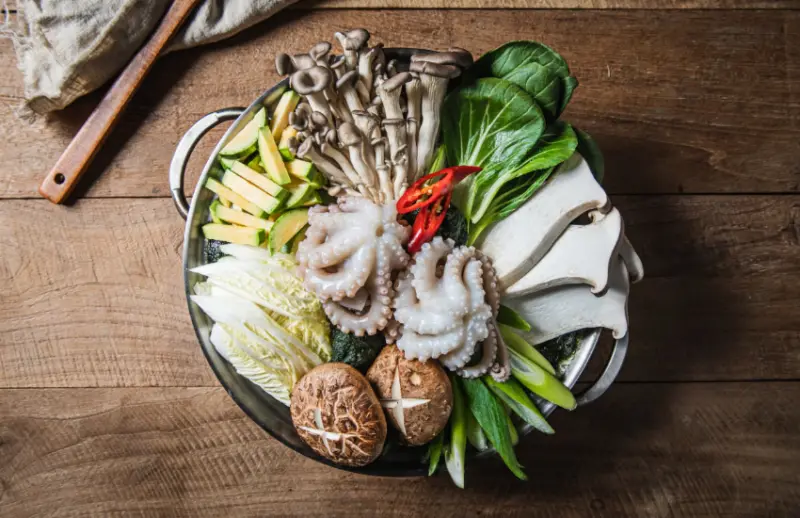 三合一湯(放入長臂章魚、內臟和蝦子的火鍋)