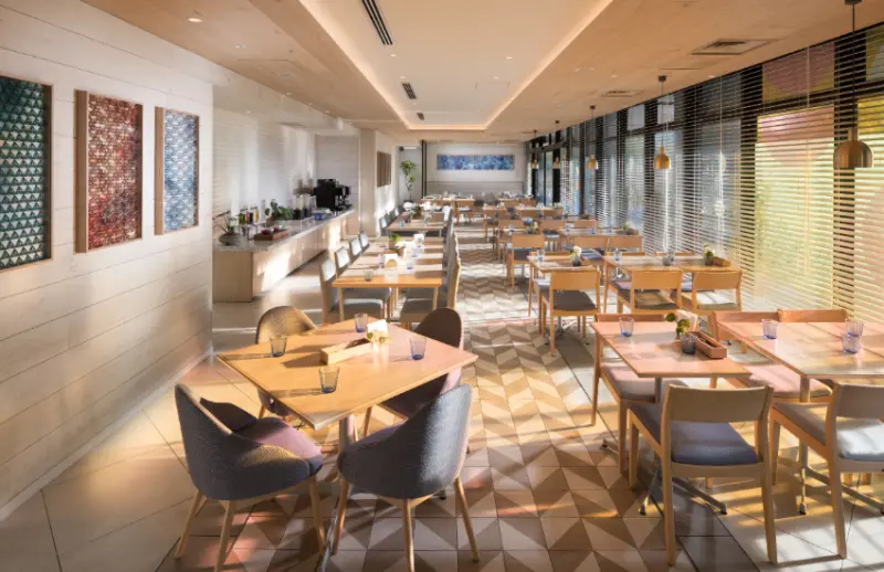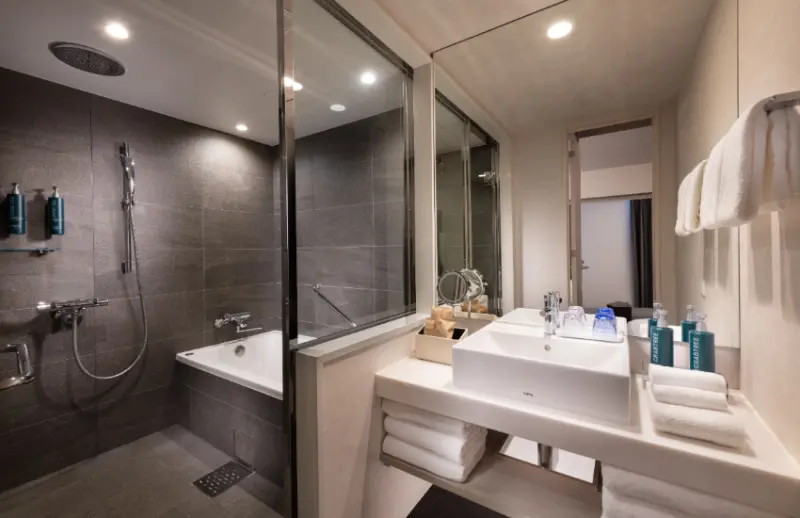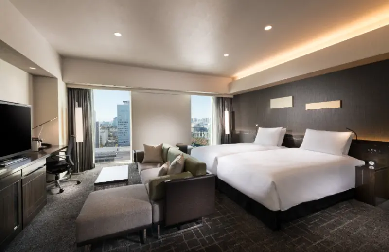 這座17層樓高的飯店共有363間客房,房型豐富多樣。標準客房面積為22平方公尺,採用簡約現代的設計風格,適合商務人士或單人旅客。豪華房則提供26至30平方公尺的寬敞空間,高層樓的房型更可飽覽東京灣的迷人景致。最令人矚目的是43平方公尺的尊貴房,不僅空間寬敞,更配備了獨立的起居區域。![]()
