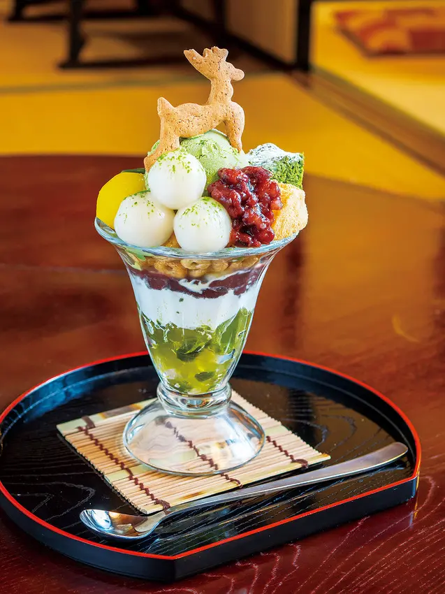 令人第一眼就愛上的溫馨町家咖啡町,洋溢懷舊氛圍的裝潢帶來古都風情。招牌Menu包含大和茶製作的特製抹茶團子、抹茶聖代等多樣和風甜點,還有能一次品嚐14種甜品的環奈小箱,此外還能吃到奈良特色美食茶粥。走累時不妨到店裡稍作休息,享用造型可愛的小鹿餅乾與聖代吧!